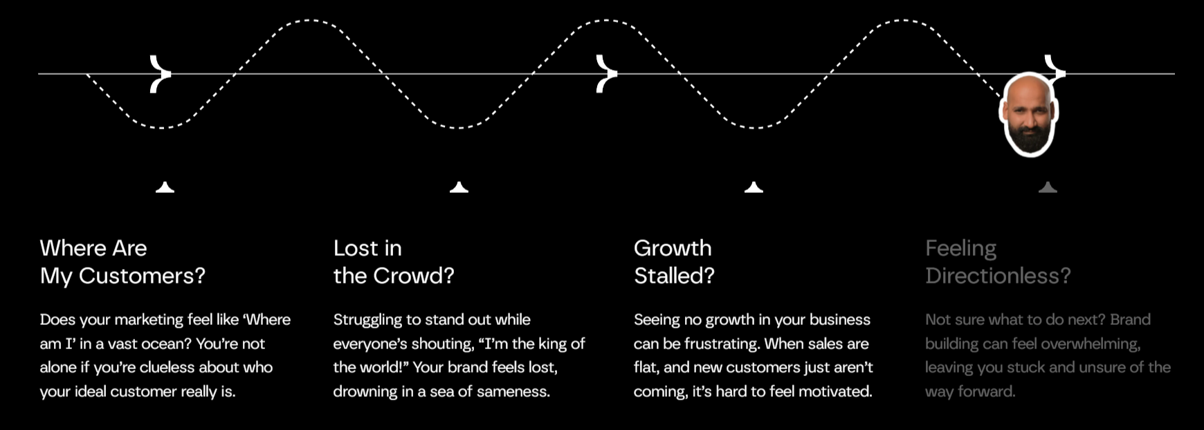 “Find your brand’s unique essence… Create Experiences that forge emotional connections… Engage your audience and turn loyal customers into advocates… Evolve with your market as trends shift…”.